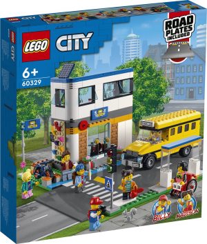 Er staan je leuke avonturen te wachten met deze LEGO® City Schooldag (60329) speelset met 2 klaslokalen en een schoolplein met een klimmuur en hinkelbaan, plus een schoolbus en een fiets. De wegplaten met zebrapad en fietspad kunnen aan andere LEGO sets worden vastgemaakt. Met 7 minifiguren, waaronder 2 personages uit de tv-serie LEGO City Adventures.